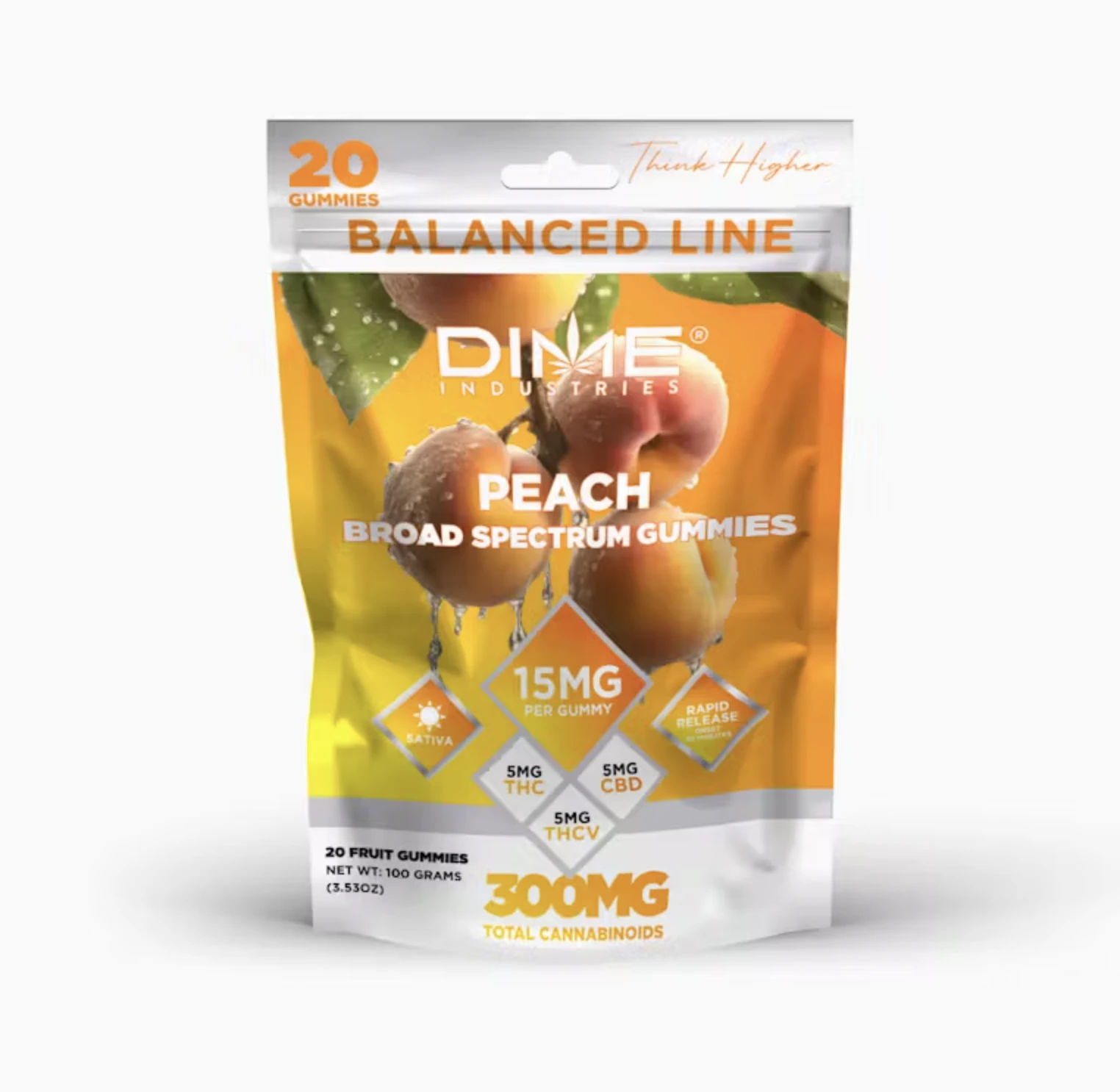 Harness the power of nature with our Peach gummies. Perfectly dosed with the perfect blend of THC, CBD and THCV. Recharge our senses with 15mg of cannabinoids per piece, designed to uplift and energize your day. Balanced Line gummies are gluten-free, vegan and rapid release.