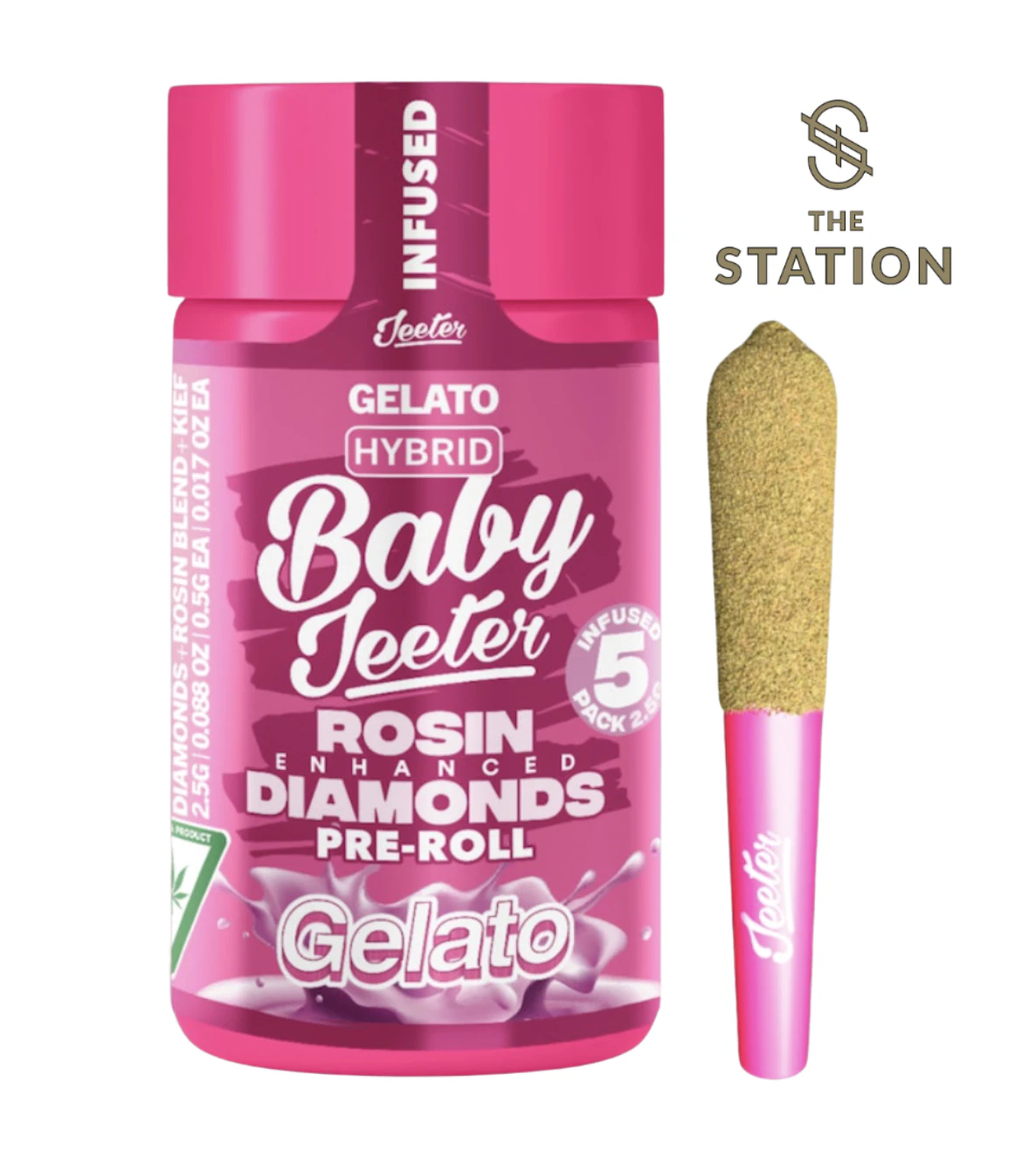 Gelato | Baby Jeeter | Hybrid 5 x 0.5G Joints 2.5G Total Quad-Infused | Premium Flower Infused with Liquid Diamonds, Rosin Blend & Kief