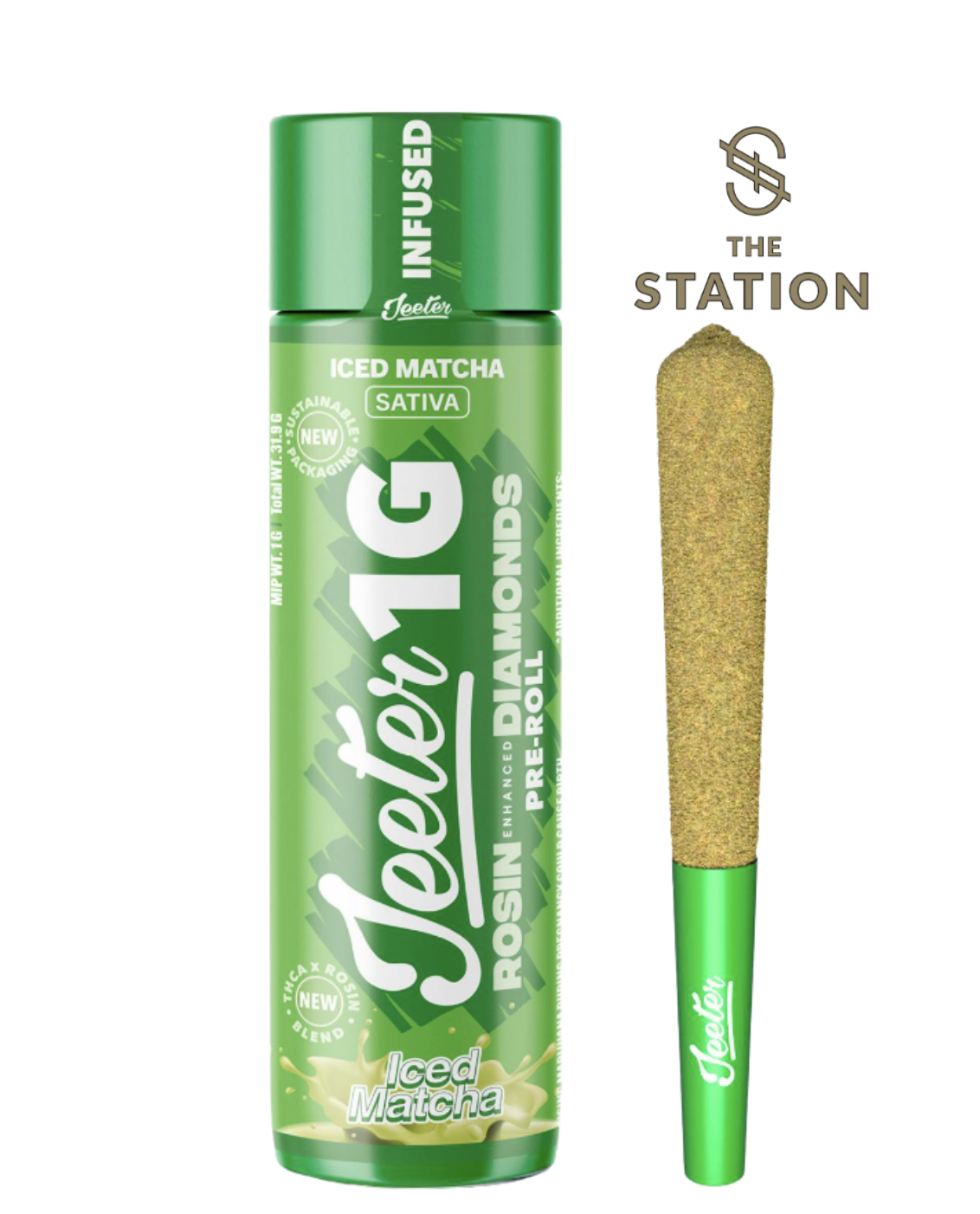 Iced Matcha | 1G Jeeter Joint | Sativa Quad-Infused | Premium Flower Infused with Liquid Diamonds, Rosin Blend & Kief