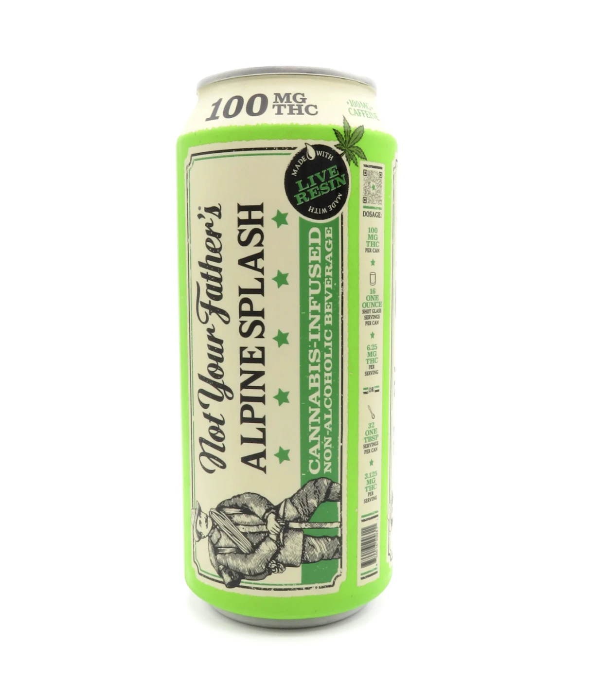 Introducing Not Your Father's Alpine Splash, now available in 16oz cans, fully loaded with 100mg THC, signature smooth flavor, and infused with Live Resin!