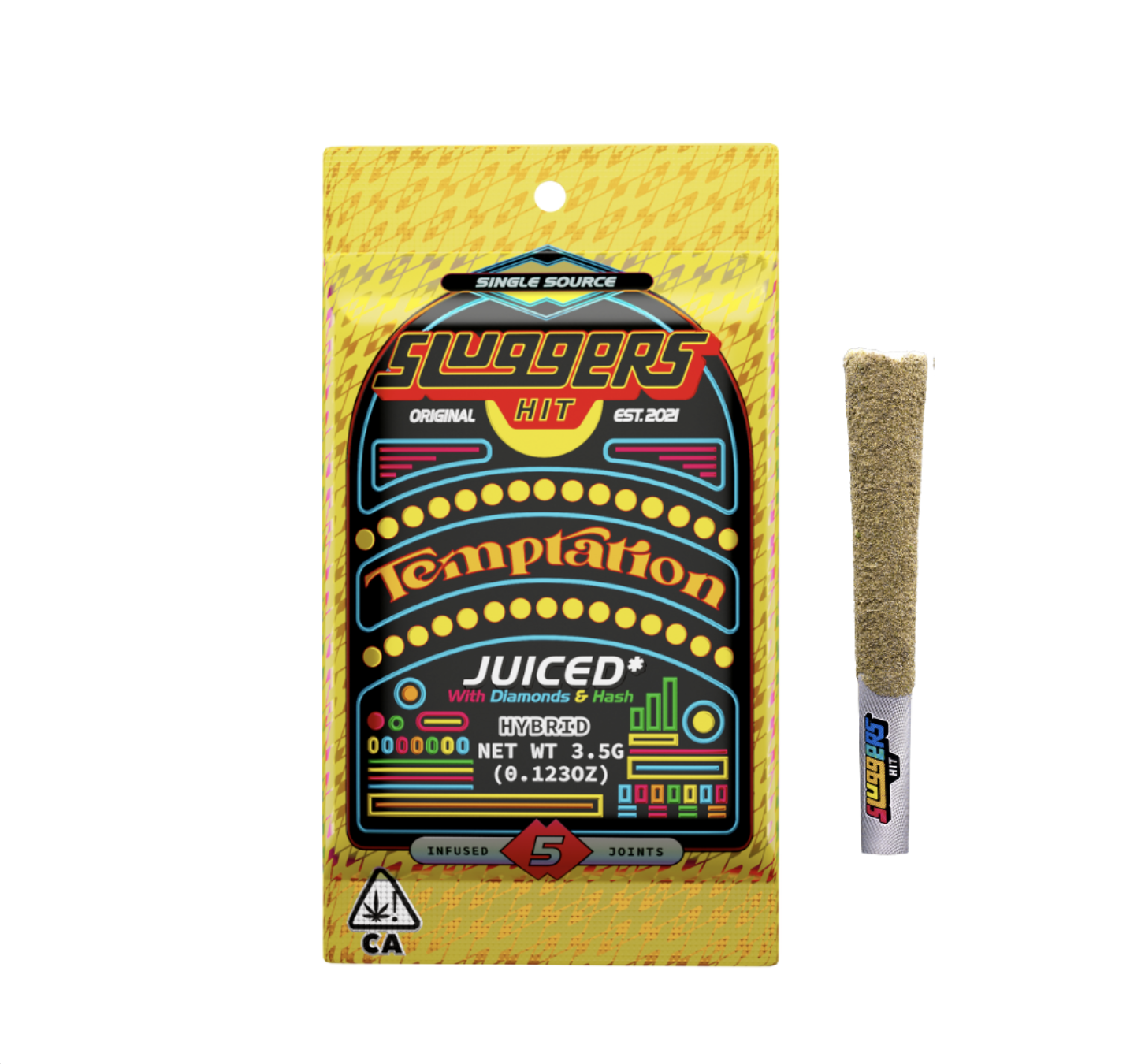 Each 3.5g 5-pack of SLUGGERS HIT JUICED* are infused with premium bud, liquid diamonds & solventless hash.
